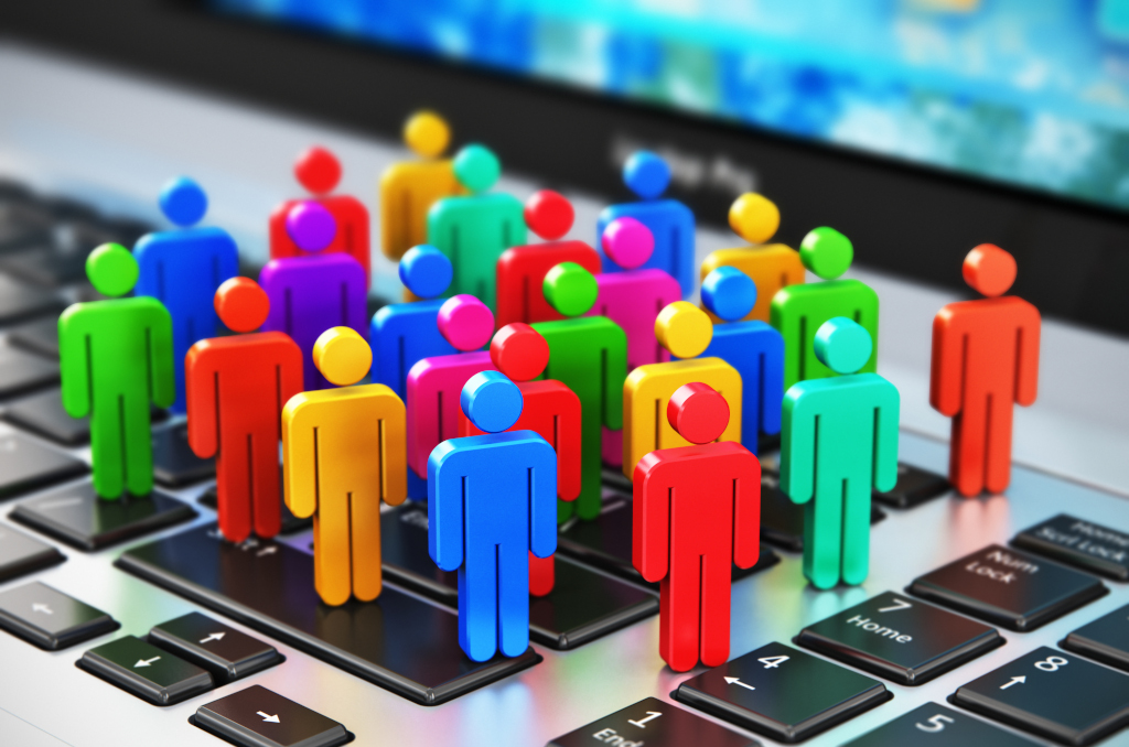 #paraCegoVer : Bonecos de pessoas sobre teclado.